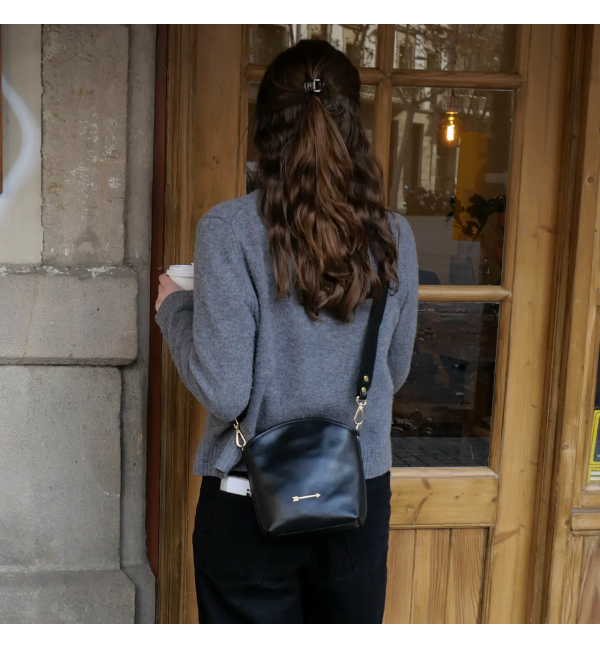 Bolso pequeño de piel estilo bandolera con corte cuadrado con parte superior redondeada con asa desmontable y cierre de imán
