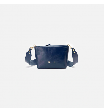 Bolso mediano de piel con forma rectangular de diseño sencillo, práctico y atemporal con asa ancha para poder llevarlo cruzado