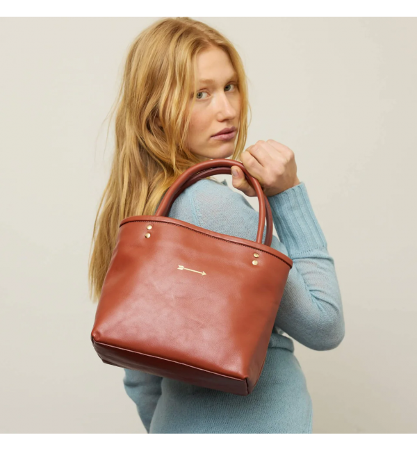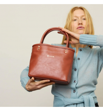 Bolso mediano de piel color teja estilo shopper con doble asa corta