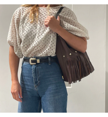 Bolso de piel tipo saco, ligero y con mucha capacidad con dos asas para llevarlo al hombro o cruzado