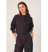 Camisa de algodón con estampado en tonos azules y detalles bordados a mano en la parte de los hombros