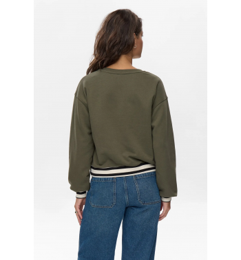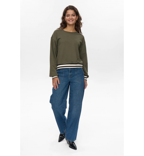Sudadera de color khaki con detalle de rayas combinado en puños y bajo