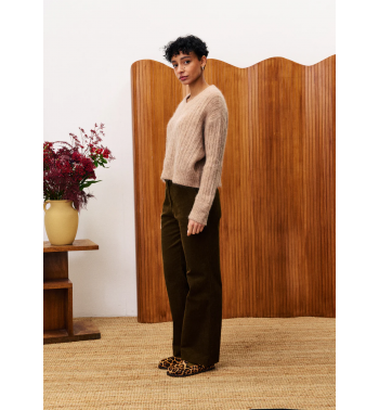 Pantalón de pana color kaki con bolsillos laterales y trabillas para cinturón