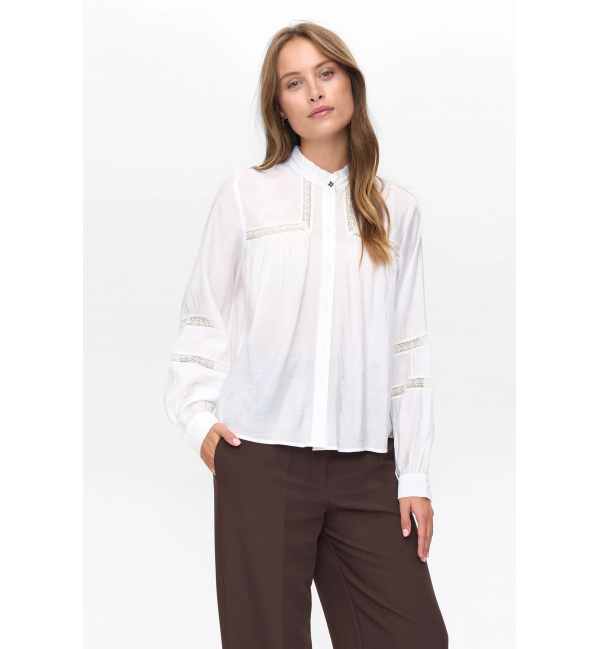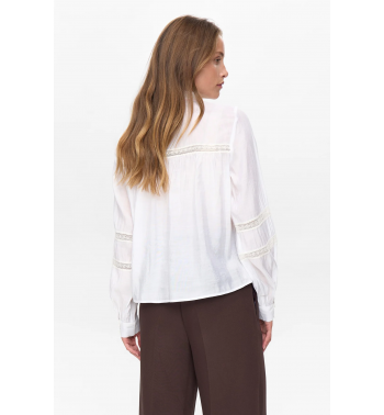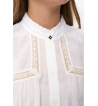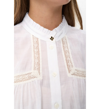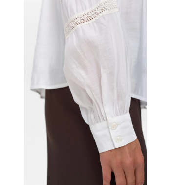Camisa blanca con detalles bordados y mangas ligeramente abullonado