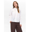 Blusa de manga larga ligeramente abullonada con goma en puños y cuello mao con volante y botones forrados