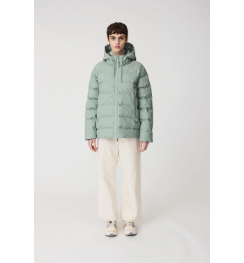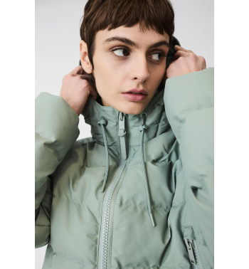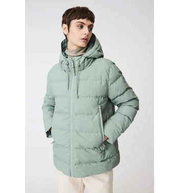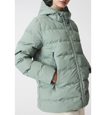 Abrigo corto acolchado de mujer con aislamiento acolchado sin plumas en tejido impermeable de poliuretano