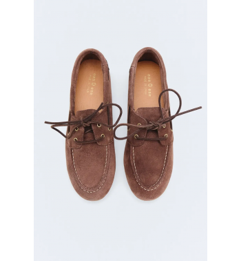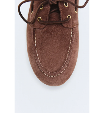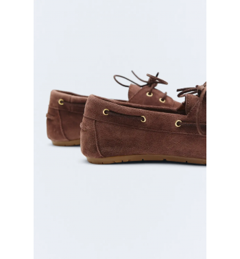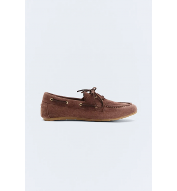 Zapato estilo náutico con piel vacuno con acabado en serraje con suela engomada y cierre con cordones