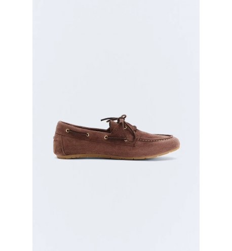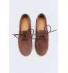 Zapato estilo náutico con piel vacuno con acabado en serraje con suela engomada y cierre con cordones