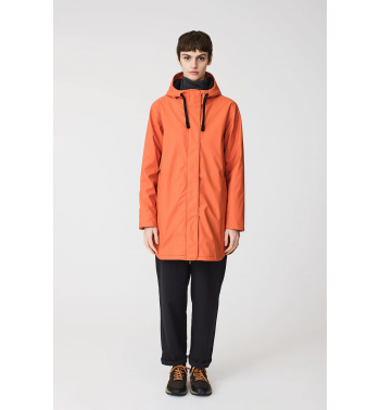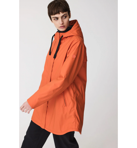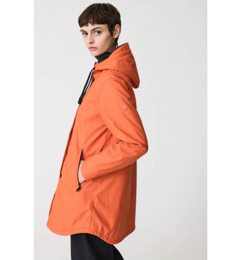 Impermeable de mujer confeccionado en poliuretano que incorpora una capa aislante, ligera y sin plumas