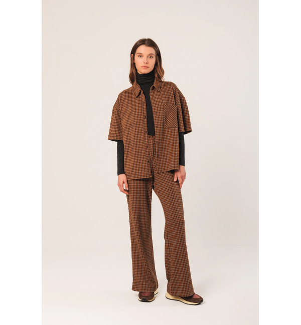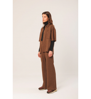 Sobrecamisa de manga corta y hombro caído en doble punto roma con cierre frontal de botones