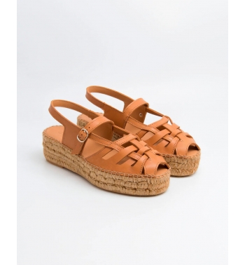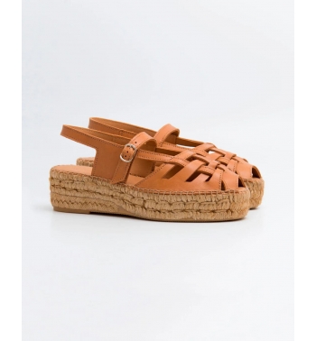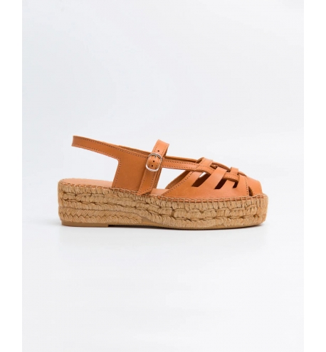 Alpargata estilo cangrejera con puntera cerrada en piel serraje