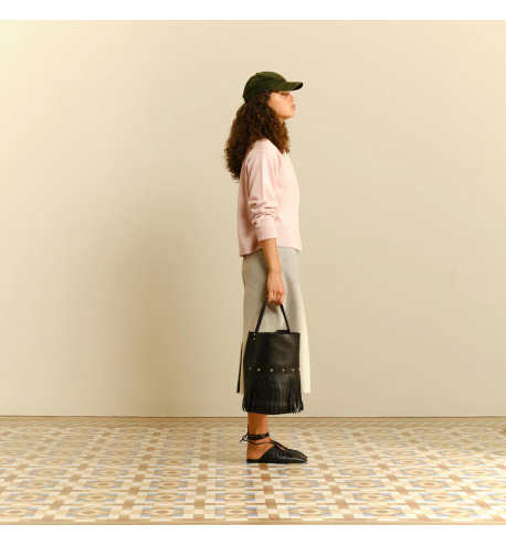 Bolso de piel tipo saco, ligero y con mucha capacidad con dos asas para llevarlo al hombro o cruzado