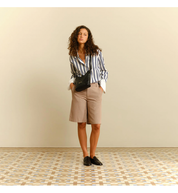 Bolso mediano estilo bandolera con corte semi ovalado en la parte superior con asa con hebilla para ajustar a la altura que más te guste